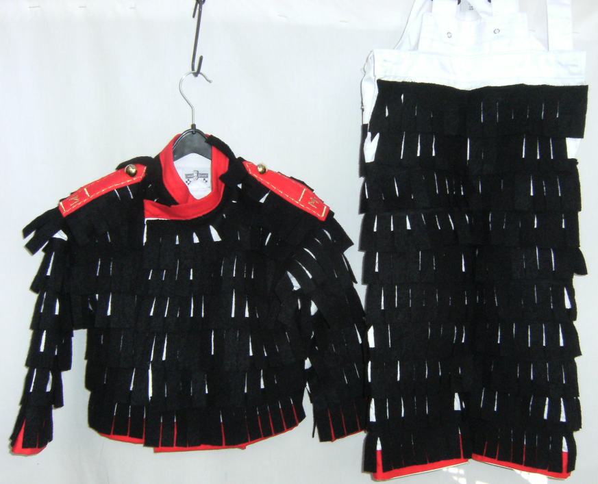 Für Fasnetgruppen stelle ich Häse her. Hier werden auf weiße Anzüge in Streifen geschnittene Filzfransen aufgenäht. Fasnethäs, Jacke mit Stickereien die Hose dazu Häs mit weißem Tuch Ein Kinderhäs mit Stickereien Das komplette Kinderhäs |