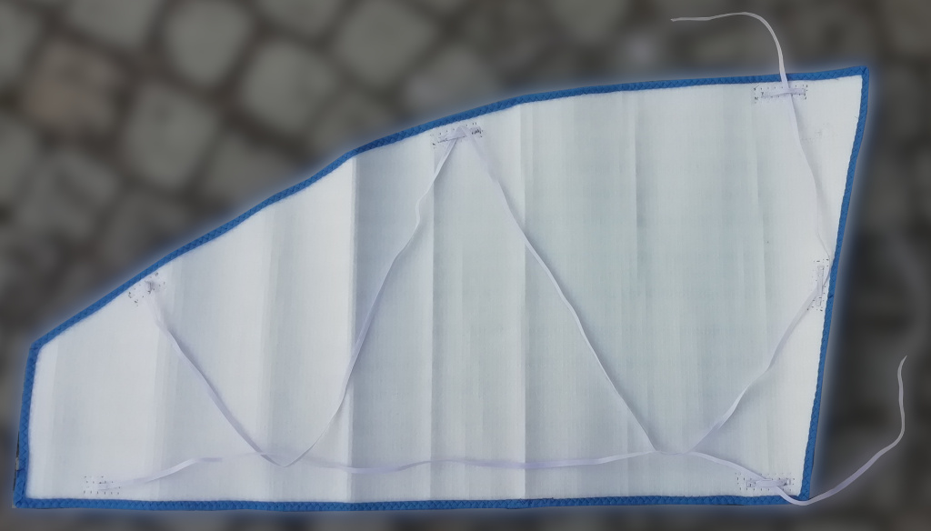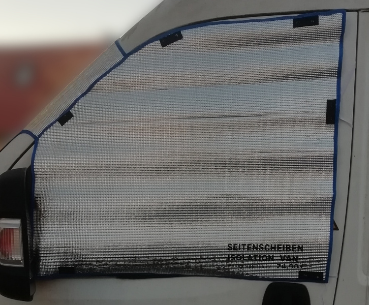 Frontscheibe gibt es Abdeckungen. Jetzt gibt es bei mir auch Abdeckungen für die Fronttüren. Diese Eigenentwicklung passt für alle gängigen PKW-Türen. Lediglich die Spanngummis müssen angepasst werden.